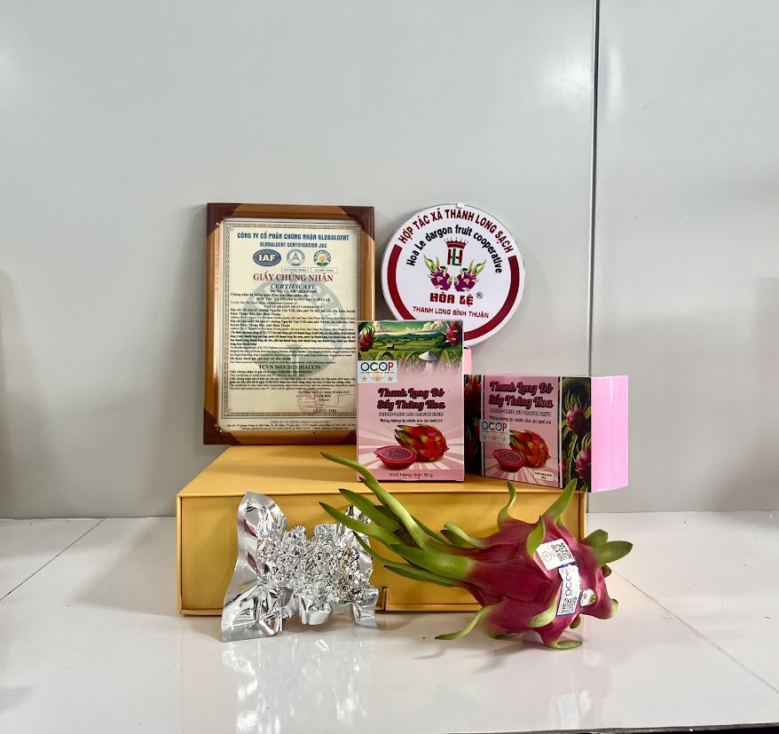 Sản phẩm tạo ra bằng công nghệ sấy thăng hoa hiện đại. Quá trình này giúp loại bỏ nước trong trái thanh long tươi bằng phương pháp cấp đông, hút chân không theo quy trình khép kín, giúp giữ lại gần như toàn bộ hình dạng, màu sắc, hương vị tự nhiên và các chất dinh dưỡng quý giá từ quả Thanh long sản xuất thực hành theo tiêu chuẩn Global G.A.P. tại Bình Thuận - HTX Thanh long sạch Hòa Lệ