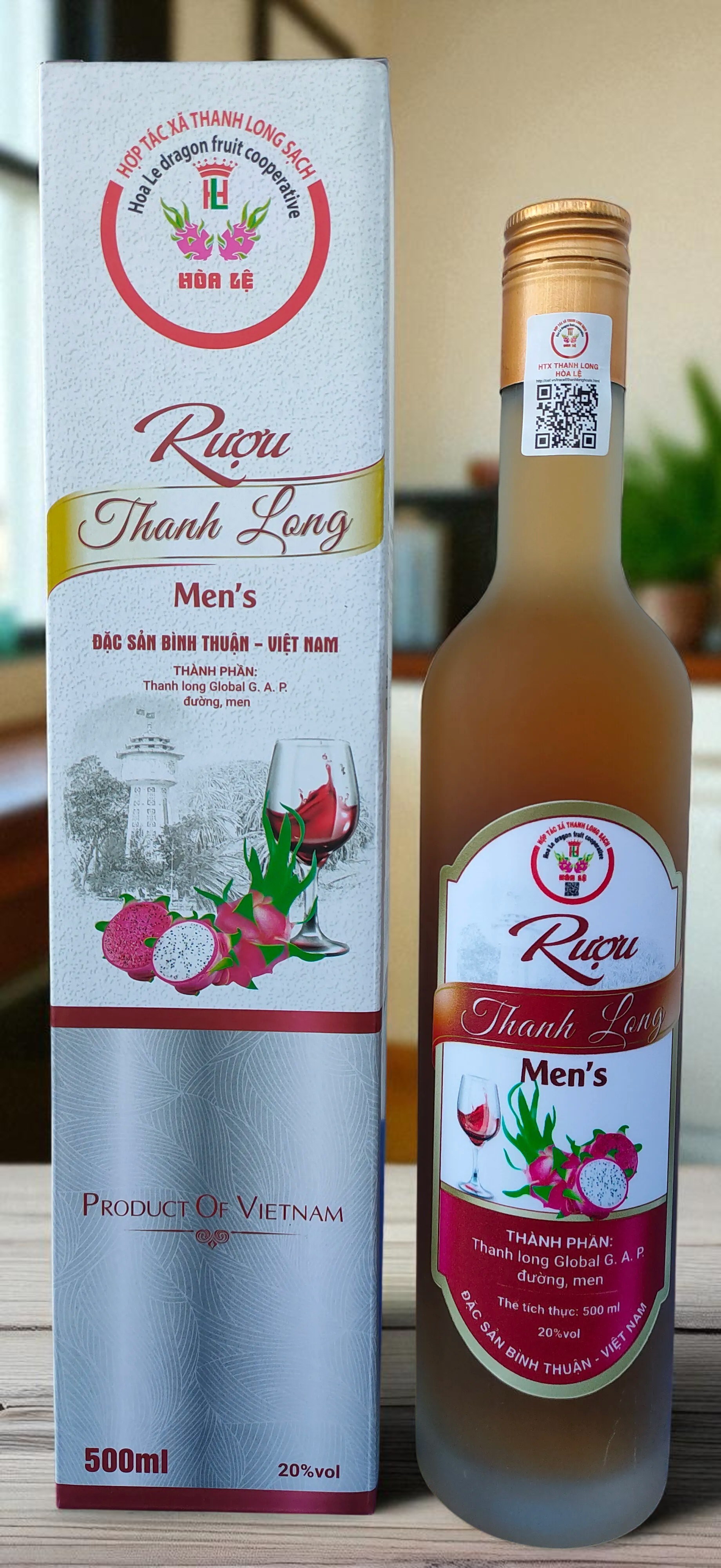 • Rượu Thanh Long  Men's - Hòa Lệ, có vị nồng, hơi chát, màu đặc trưng của thanh long nấu chưng cất, kết hợp với vị chua, ngọt nhẹ của thanh long đỏ, trắng lên men tự nhiên.